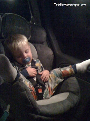 So it's Wednesday, Bible study night for our family and a couple other families from our church. After a wonderful night of studying the Bible, having fellowship with others, and playing a fun game of duck duck goose (ages 1-22), I headed home driving a minivan full of three energetic young'ins. (I was helping out a family from church). By the time the 30 minute drive was over, all three kiddos had fallen fast asleep in their seats. Score!!!
